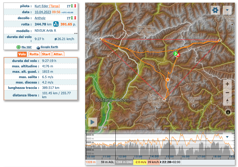 10 aprile è partito dal decollo di Antholz per un nuovo volo, forse più con l’obiettivo di prendere confidenza con la vela che con l’idea di rimanere in volo per quasi 10 ore. E invece…