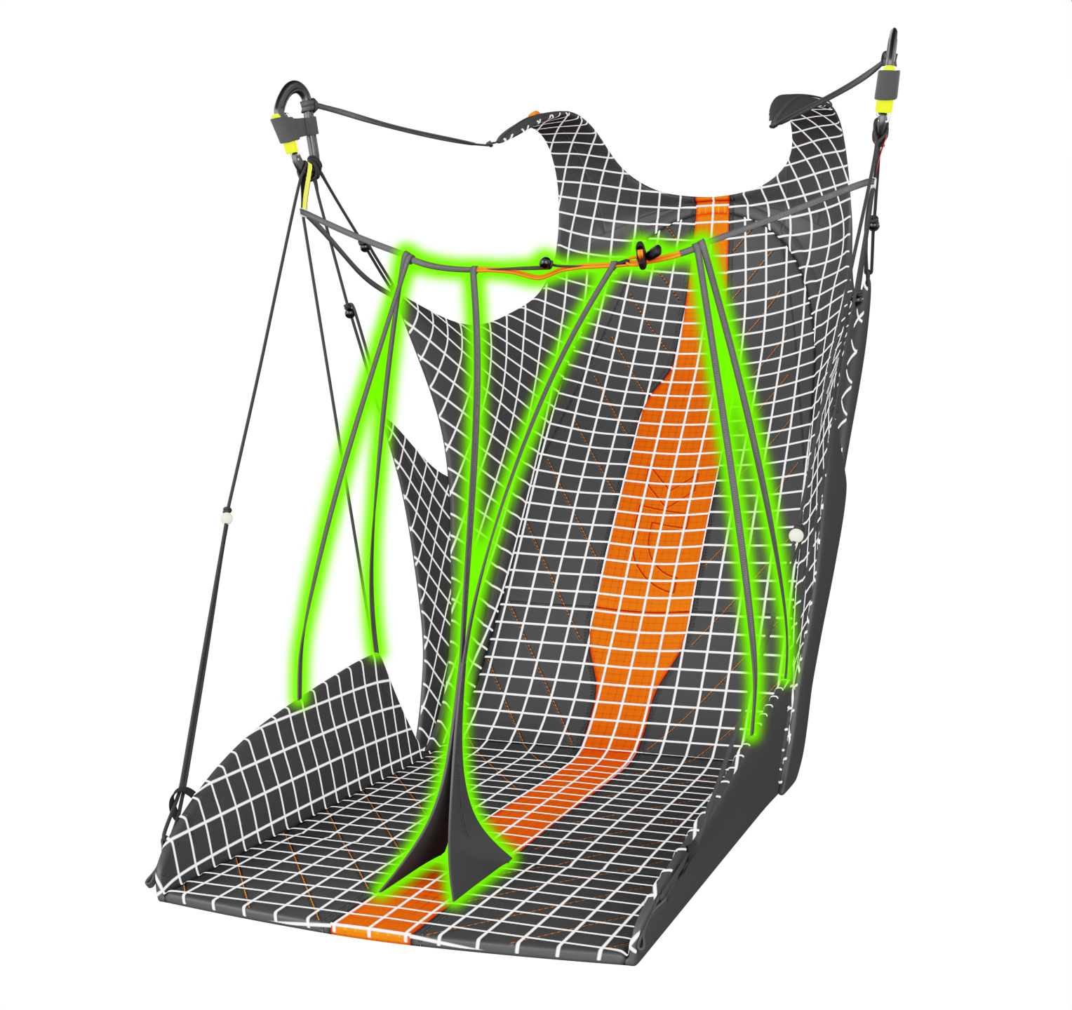 COMFORT AL 100% Un imbrago dal comfort eccezionale, grazie alla seduta modellata in 3D. Struttura ergonomica adattata alle tue esigenze. Il sistema di triangolazione utilizzato ottimizza la stabilità, che si traduce in comfort ed efficienza nel volo accelerato. |