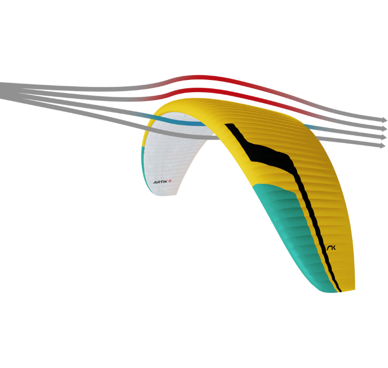 Una sensazione diversa durante le planate: migliore, molto più fluida e più efficiente. L'Artik R è una vela dinamica per chi vuole fare un passo avanti, ma con una grande solidità che mantiene la stabilità in volo, soprattutto nel beccheggio