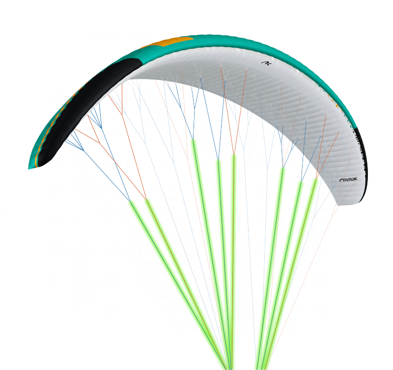 Grazie alle tecnologie Niviuk applicate, l'Inuma 3 è una vela ad altre prestazioni nella quale è stata mantenuta la sua elevata sicurezza passiva.