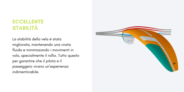 Goditi il paramotore in tandem in tutta comodità. Questa vela è stata progettata con l’obiettivo di adattarsi alle esigenze del pilota e del suo passeggero e di sperimentare i voli ricreativi più piacevoli.