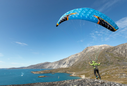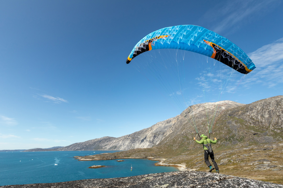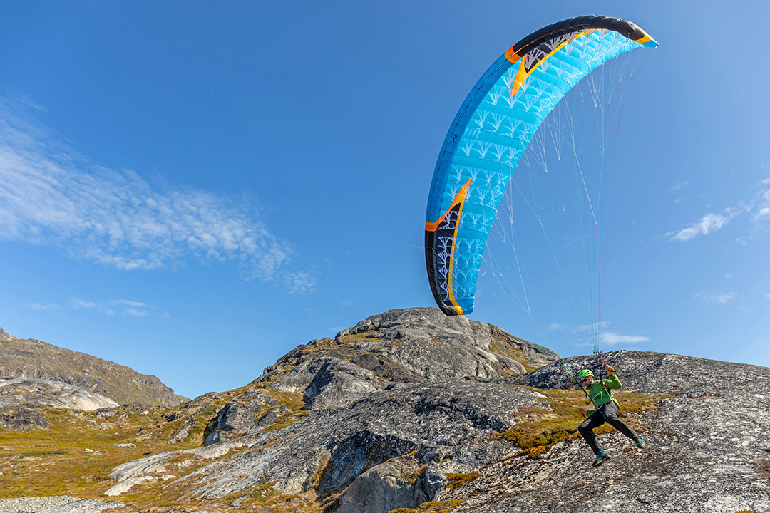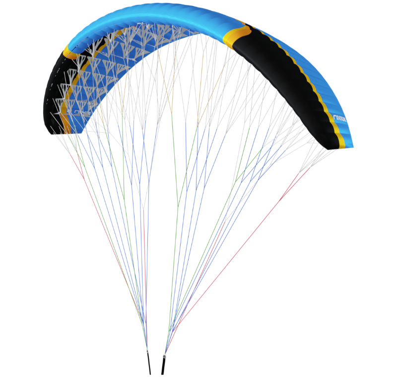 Il decollo è più facile grazie al nuovo bordo d’attacco autogonfiabile. La vela sale sopra il pilota senza alcuna difficoltà. Maggiore corsa dei freni per un atterraggio più fluido e preciso.